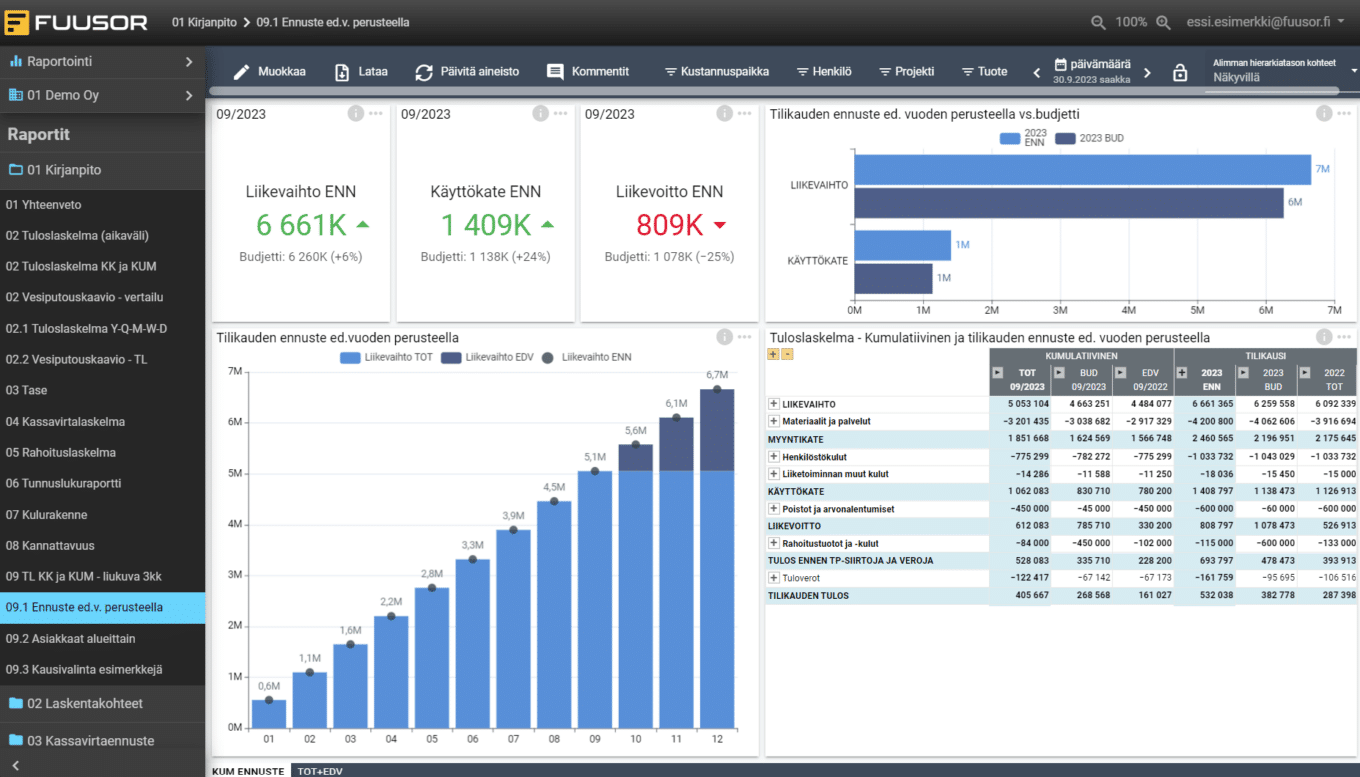 Fuusor Budjetointi sisältää kattavan valikoiman toimintoja ja ominaisuuksia, jotka tekevät budjetoinnista ja ennustamisesta helpompaa ja tarkempaa.